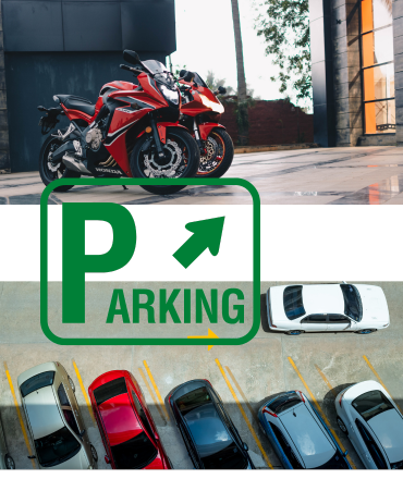 We have covers parking spaces for vehicles including cars, motorcycles.